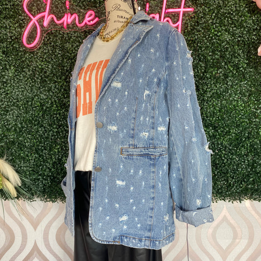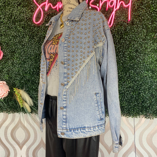 Sold outA1265 Denim Studded Jacket w/Fringe