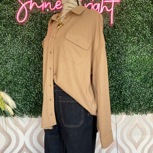 Sold outA1197 Tan Waffle Long Sleeve Top